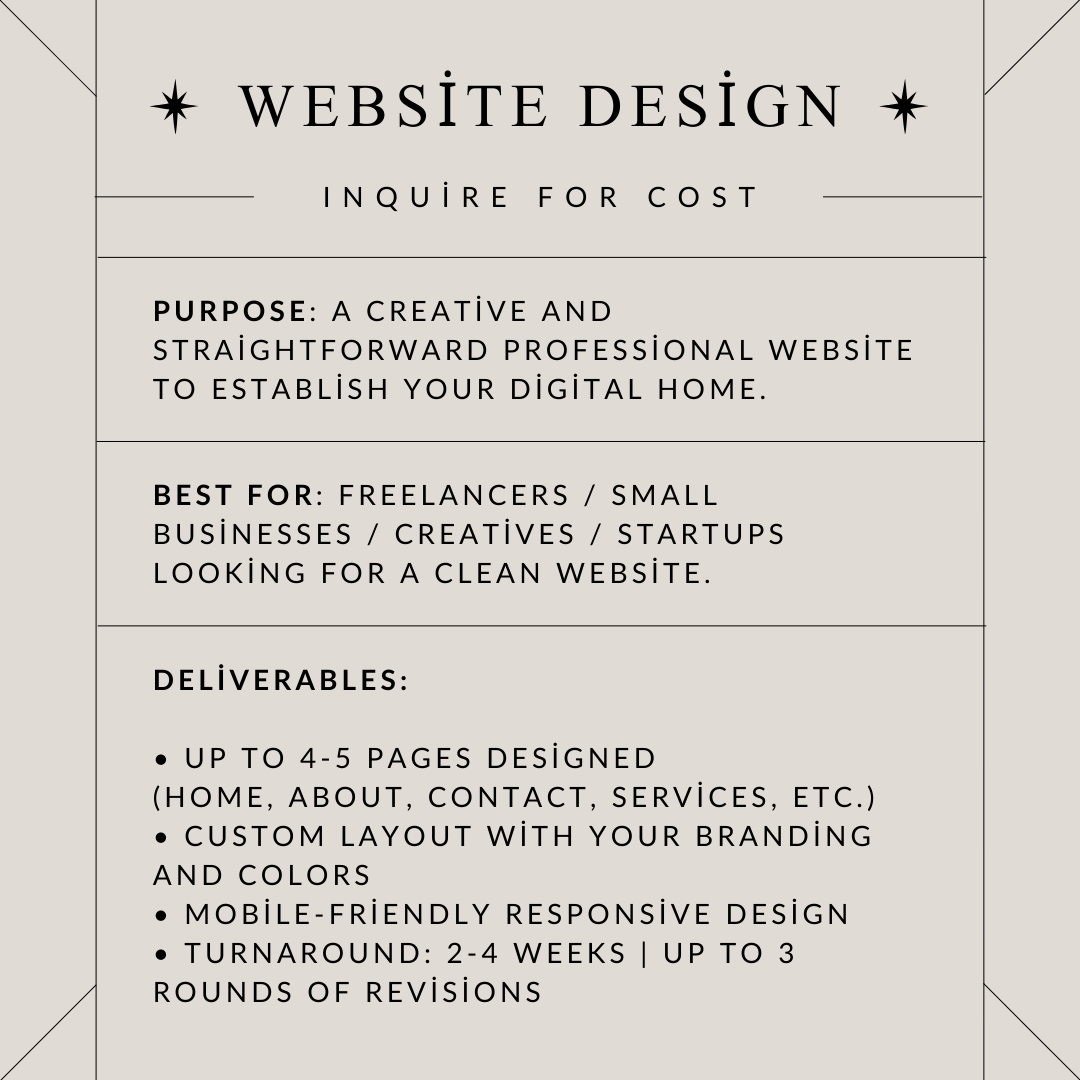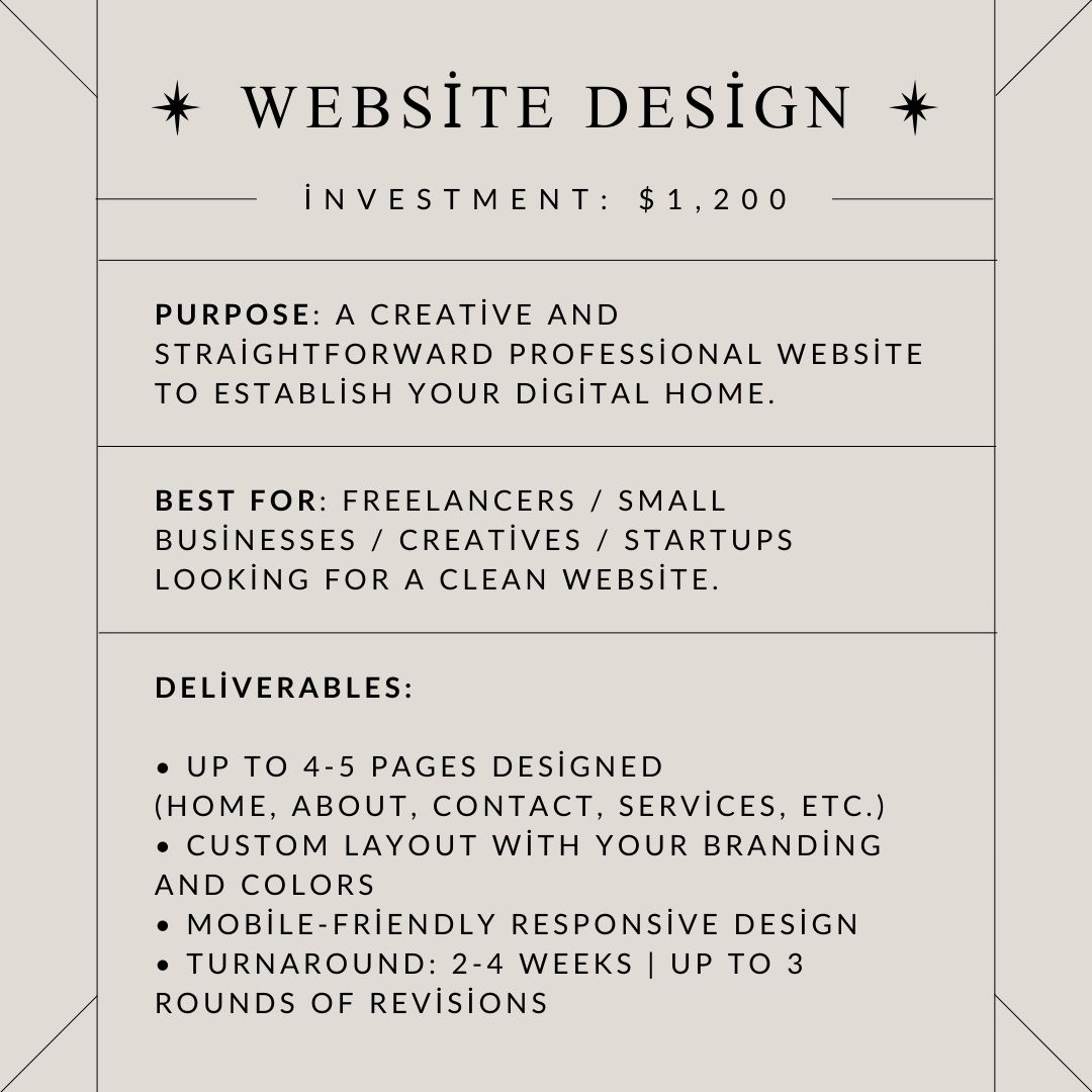 A one-page site (perfect for simplicity and clarity) or A multi-page site (up to 5 – 10 pages — think: Home, About, Services, Contact, Blog or Portfolio)